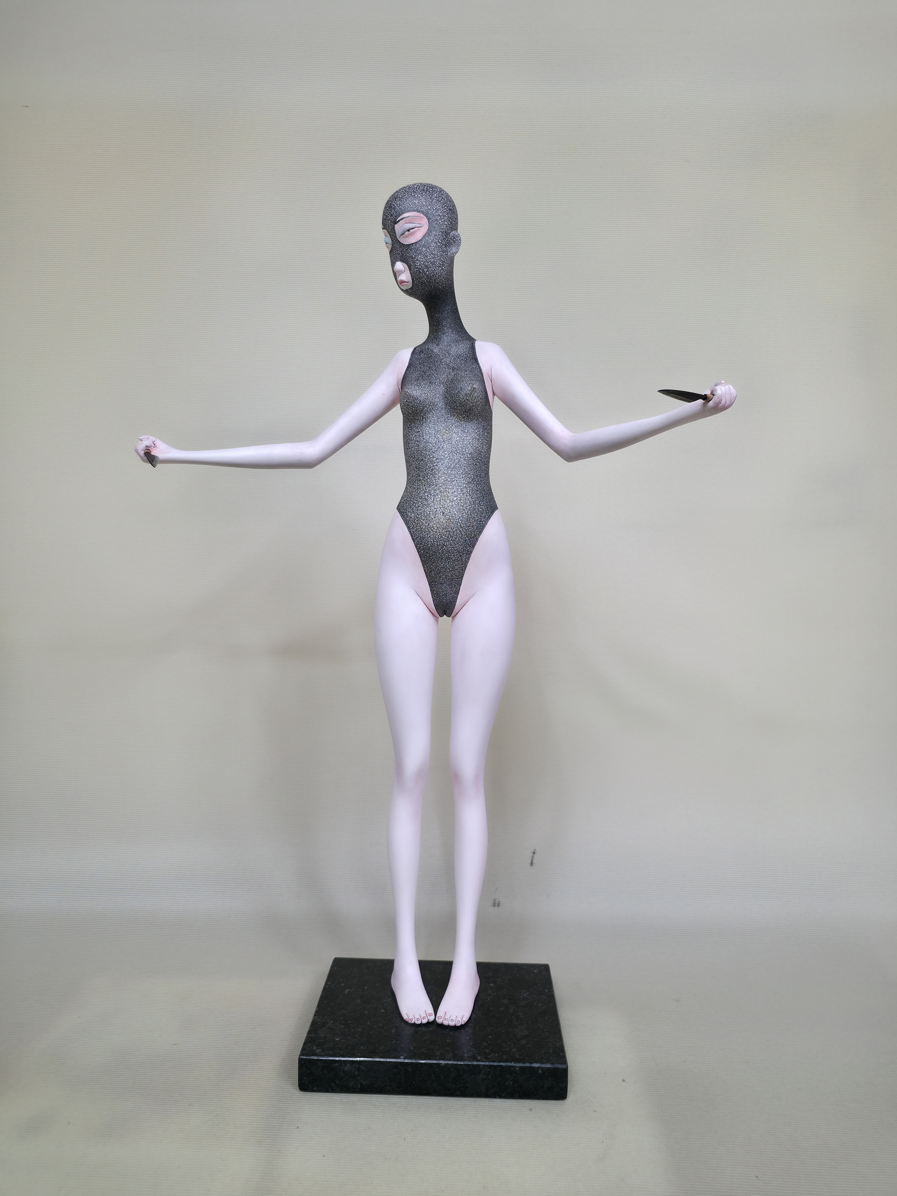 작가는 <외로운 집착>을 통해 내면 깊숙이 묻어두었던 약한 부분을 꺼내 들었다. 그리고 집요하게 물고 늘어진 화두를 가학적인 여성의 몸을 빌려 묻고 있다. 당신을 옴짝달싹하지 못하게 만드는 게 무엇인가, 묶인 팔과 쇠사슬이 채워진 다리로 상징되는 능동성과 적극성을 막아 버린 것은 무엇인가, 당신의 가장 은밀하고 약한 부분을 헤집고 베이게 하면서도 눈을 가리게 하는 것이 무어냐고 묻고 또 묻는다.